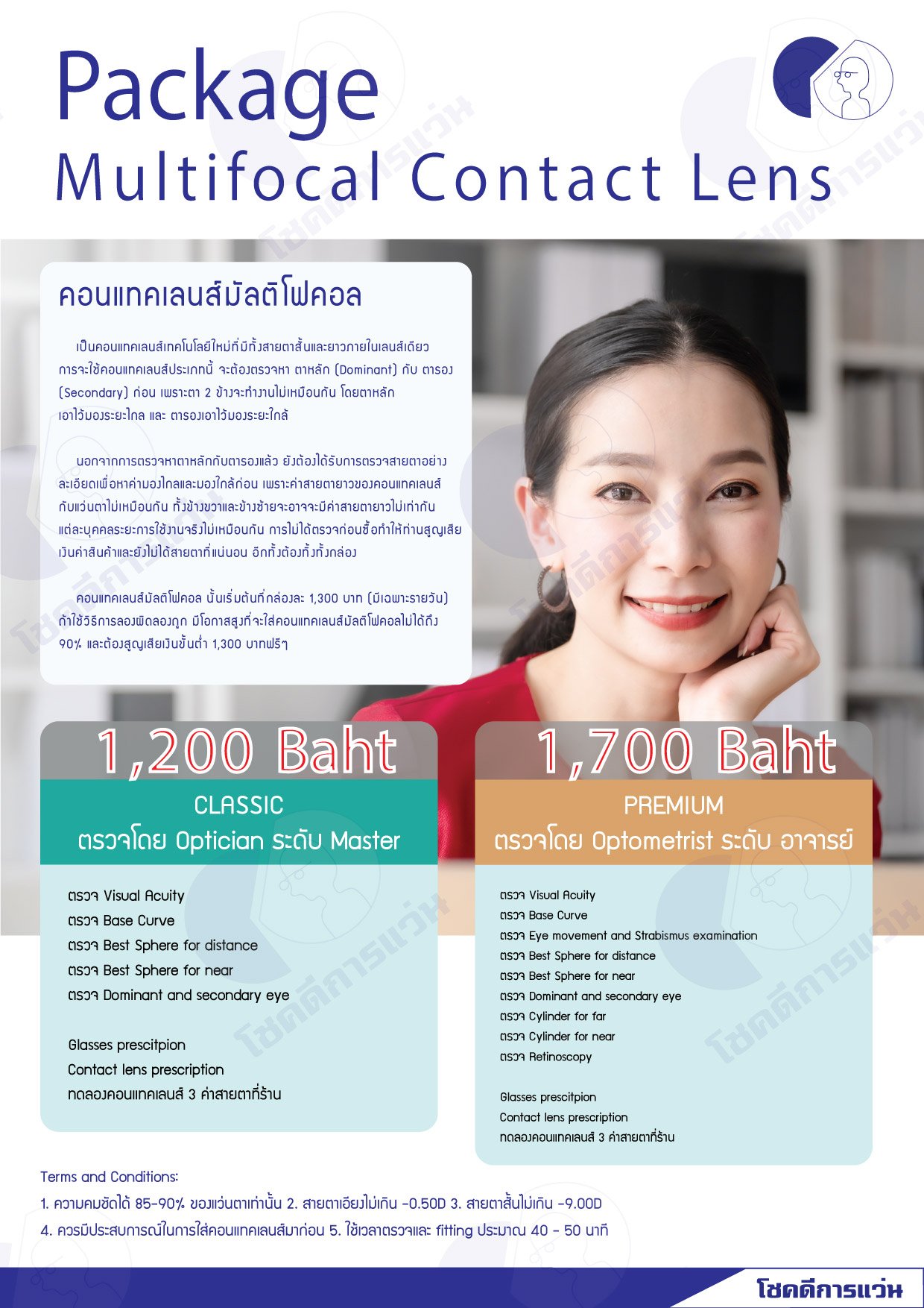 สำหรับคนสายตายาวบอกลาแว่นอ่านหนังสือได้เลยครับ เพราะด้วยคอนแทคเลนส์มัลติโฟคอล นวัตกรรมใหม่ล่าสุด ที่จะทำให้ทุกท่านที่มีปัญหาสายตายาว สามารถกลับมาอ่านหนังสือ และใช้ชีวิตประจำวันได้อย่างวัยหนุ่มสาวอีกครั้ง โดยไม่จำเป็นต้องใส่แว่นอ่านหนังสืออีกต่อไป (มองได้ทั้งระยะไกลและระยะใกล้)